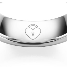 A snippet of text or a saying can be engraved on the inside, as well as the outside of the ring. An inside text is more of a hidden love message. A saying engraved on the outside of the ring is a visible design element.